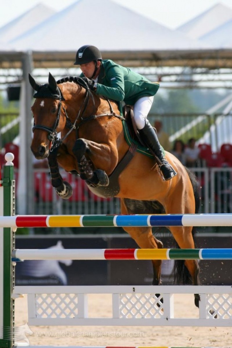 De Duitse springruiter Marco Kutscher heeft zaterdagavond de overwinning in de Italiaanse etappe van de Global Champions Tour behaald. De Duitser reed met Cash een schitterende foutloze barrage. De Brit Nick Skelton zat hem vlak op de hielen met Carlo. Ook hij bleef foutloos, maar was exact tweetiende van een seconde trager dan Kutscher. De Braziliaan Rodrigo Pessoa werd derde met HH Rebozo.
