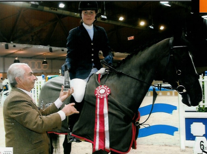 Foto : Karline De Brabander & Cordula de Laubry ontvangen felicitaties van Nelson Pessoa na hun overwinning