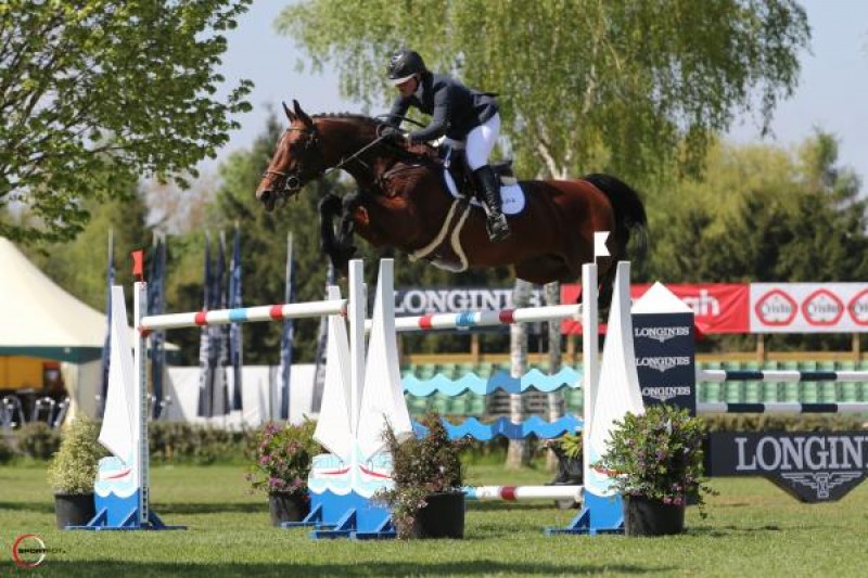 De achtjarige Breitling du Paradis Z (Bamako de Muze x Vigo d'Arsouilles) behaalt een tweede plaats in de Grand Prix van de CSI** in De Peelbergen onder het zadel van Rik Hemeryck.