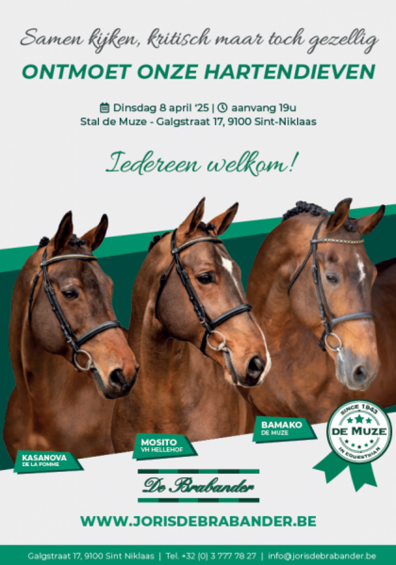 It would concern heartthrobs who have proven themselves at the highest level, such as Bamako de Muze, Kasanova de la Pomme, Elvis Ter Putte, Lector vd Bisschop and Mosito van het Hellehof, but also rising talents such as Tartufo de Muze, Sambucci de Muze and the future star Jericho de Hus.